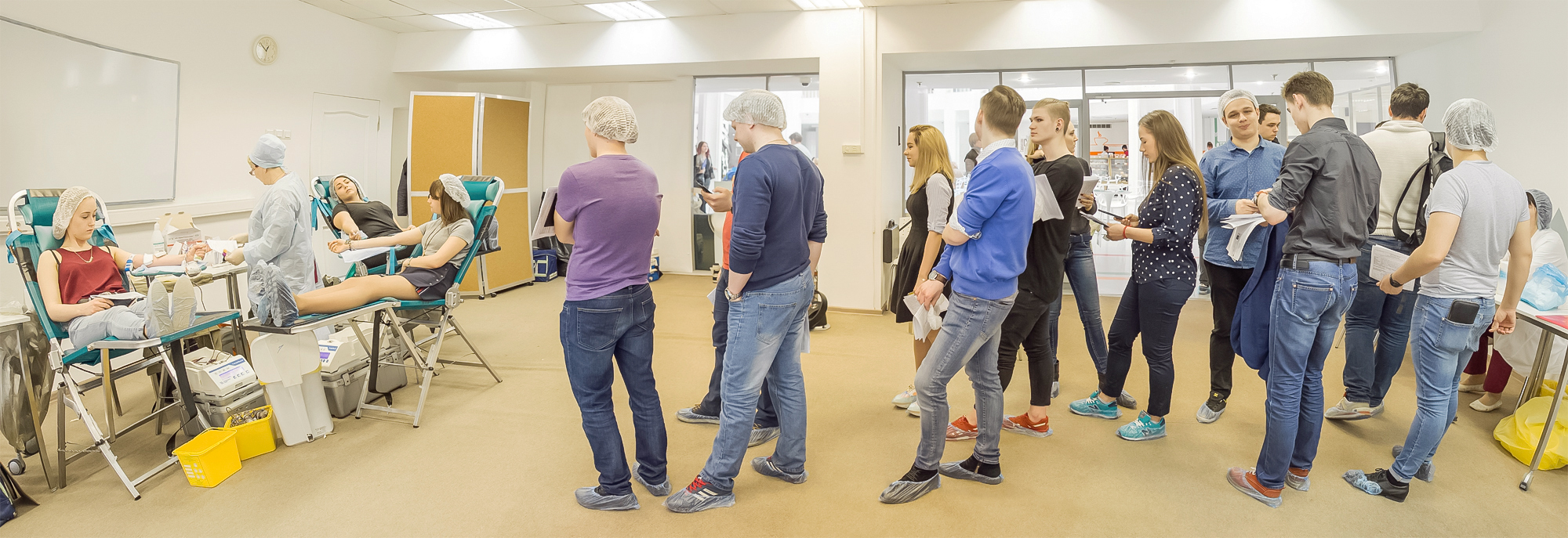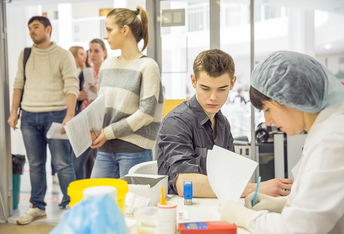 Уже с утра на первом этаже Университета образовалась большая очередь из студентов, сотрудников и преподавателей, которые решили принять участие в акции по сдаче крови.
