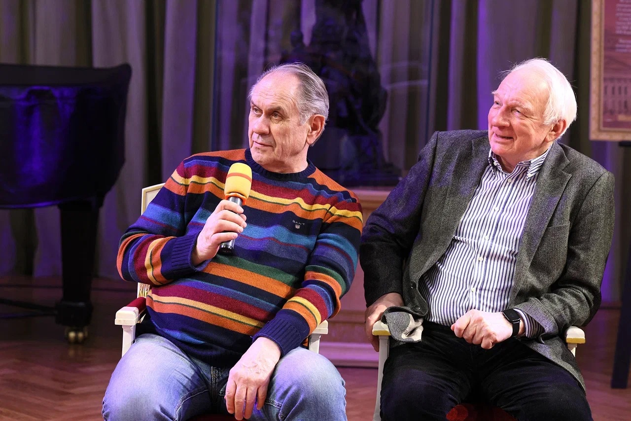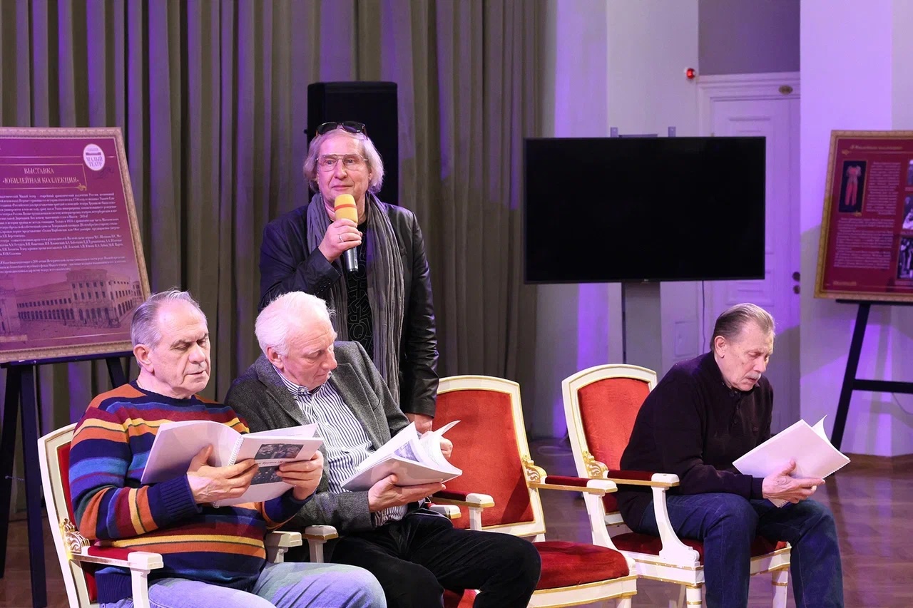 Наши студенты пообщались с исполнителями главных ролей — народными артистами России Василием Бочкаревым, Владимиром Носиком и Валерием Афанасьевым, а также режиссером спектакля Андреем Житинкиным и главным режиссером Малого театра Алексеем Дубровским. Модератором встречи выступила Татьяна Крупенникова, начальник Музейно-информационного центра Малого театра.