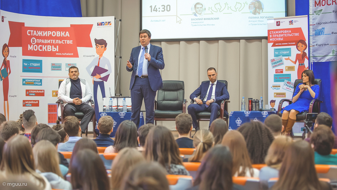 «Вы можете прийти на стажировку с любым проектом. Если вам чего-то не хватает в городе — от дополнительных пунктов пополнения социальных карт до орнитологических парков, — в ваших силах это изменить, — подчеркнул модератор встречи, ректор Университета Правительства Москвы Василий Фивейский. — Единственное условие: ваш проект должен быть хорошо просчитан и иметь конкретное обоснование».