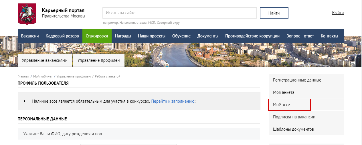 Инструкция: только для будущих стажеров Правительства Москвы!