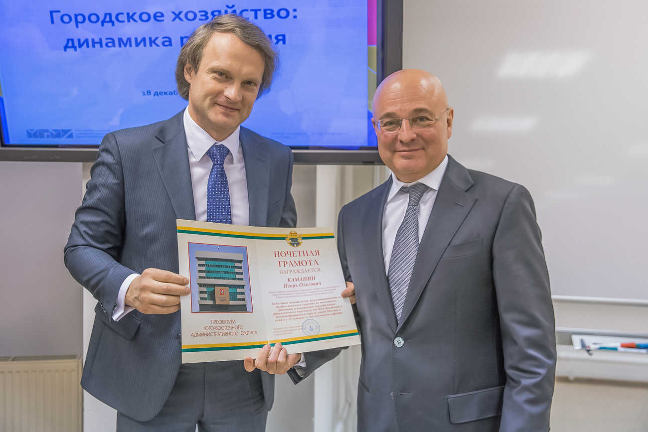 Почетными грамотами были награждены проректор Университета Алексей Александров, заместитель заведующего кафедрой экономики городского хозяйства и жилищного права Ольга Горанова, ведущие преподаватели и сотрудники кафедры.