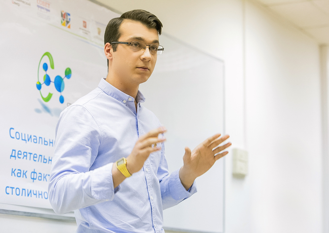 Студент второго курса Али Гусейнов поделился со слушателями волнующей темой «Развитие волонтерства в городе Москве» и мотивировал всех на добрые поступки.