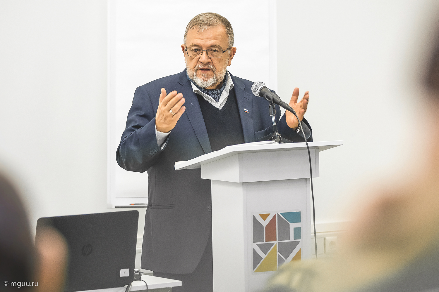 Далее выступил Владимир Зорин — член Совета при Президенте РФ по межнациональным отношениям, заместитель председателя Совета по делам национальностей при Правительстве Москвы, профессор кафедры российской политики факультета политологии МГУ имени М.В. Ломоносова, доктор политических наук, профессор.