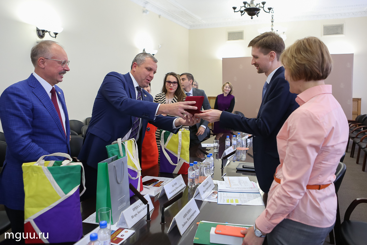 Гости из Татарстана также посетили Университет Правительства Москвы. Результатом встречи делегации с ректором Василием Фивейским, президентом Валерием Виноградовым и проректором Алексеем Александровым стало решение о сотрудничестве между МГУУ и Казанским (Приволжским) Федеральным Университетом.