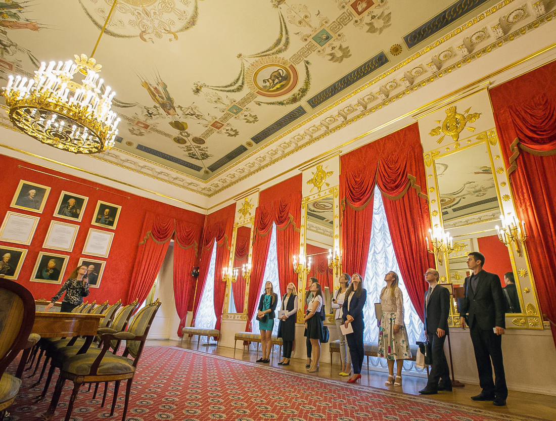 По окончании встречи ребята прошли по историческим залам мэрии и смогли увидеть, где во времена генерал-губернатора Чернышова располагалась бальная зала, где — парадные сени, где — кабинет. Стажеры были в восторге от такого насыщенного первого дня.
