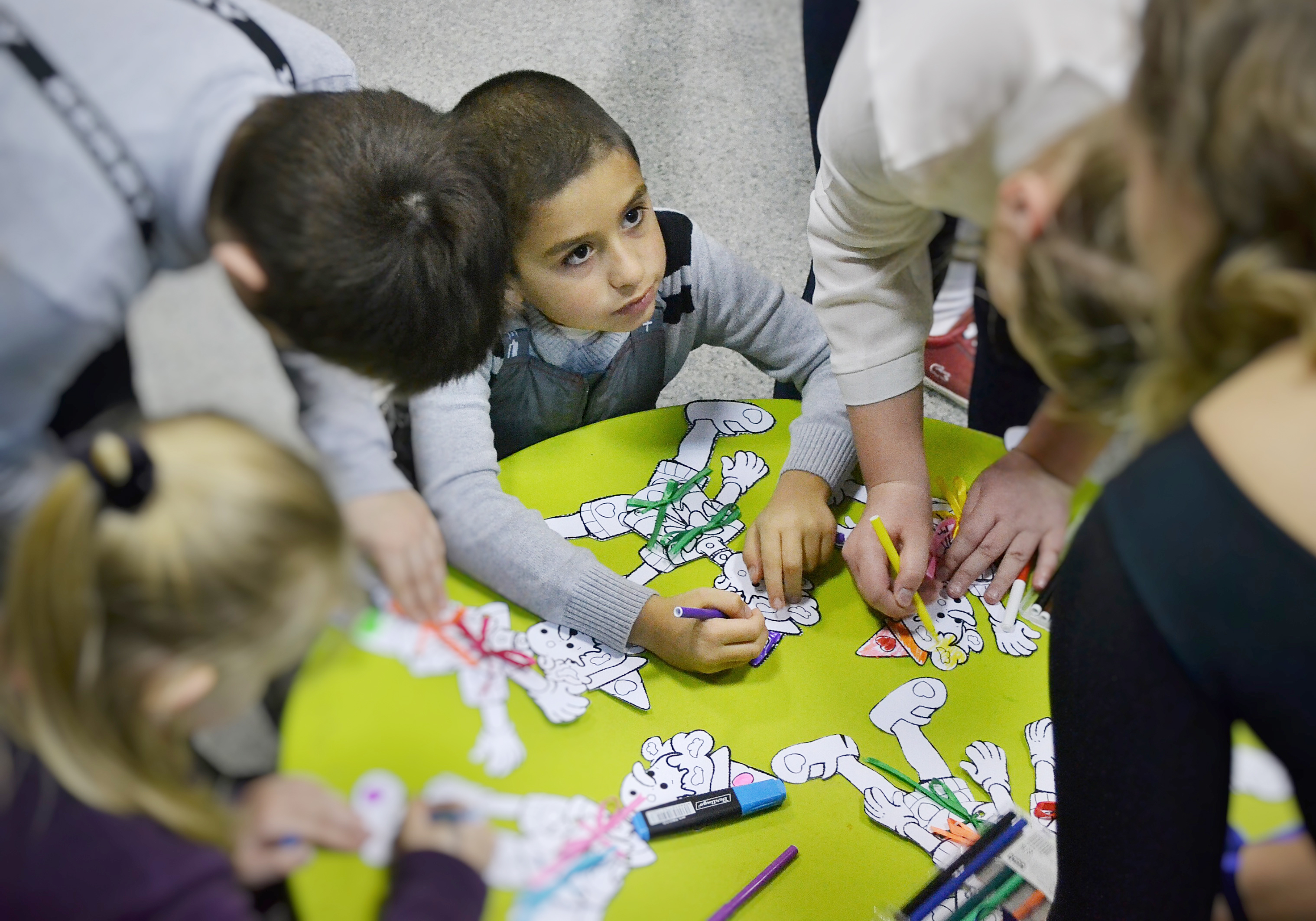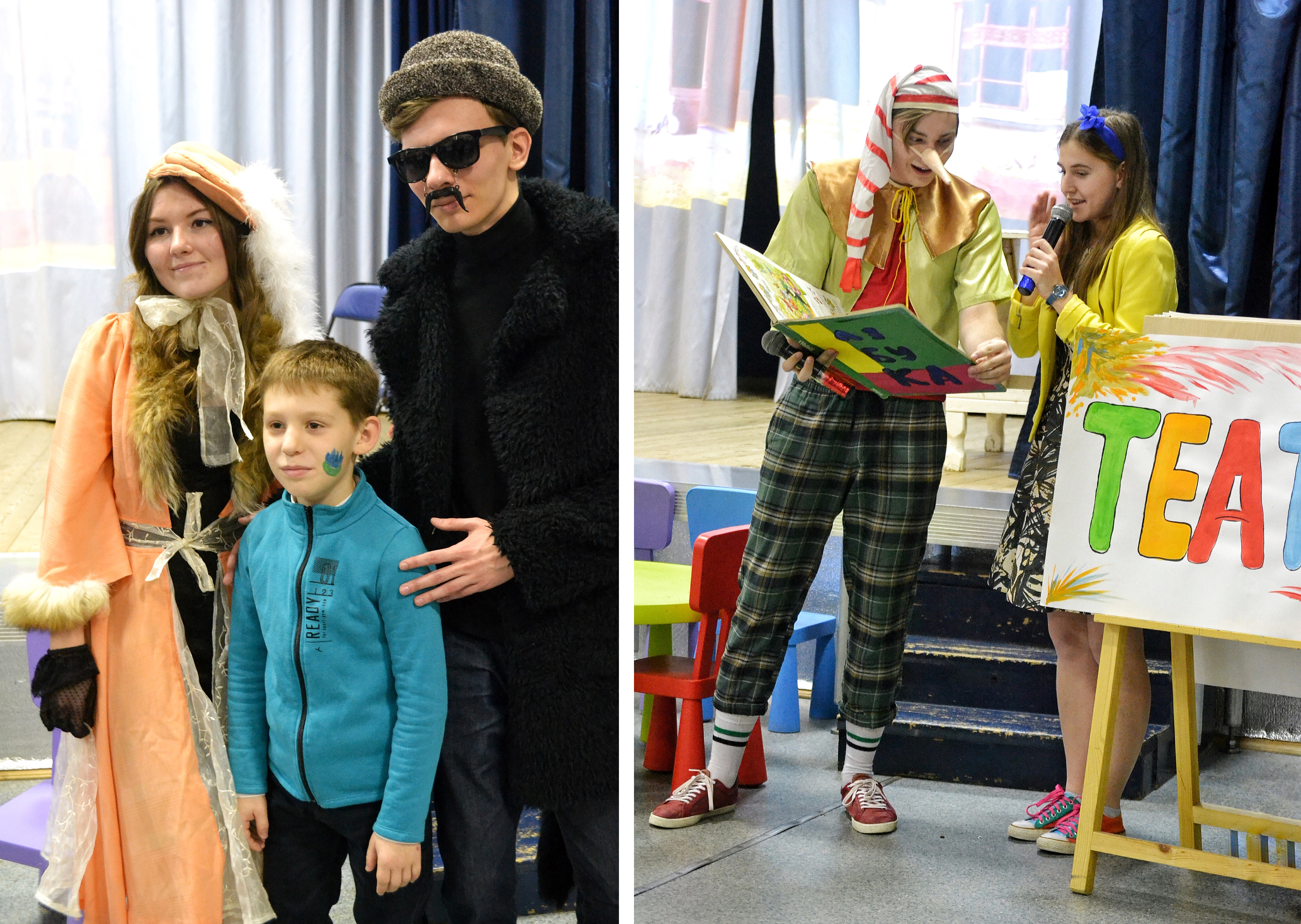 Перед студентами стояла задача помочь в творческой самореализации детей с разными видами ограничений по здоровью. Для этого они создали шесть игровых зон. На площадке «Школа» участники собирали пазл с крупными деталями «Азбука», специально разработанный для развития мелкой моторики. Бумажную куклу дети раскрашивали на площадке «Театр». Вместе с Буратино, котом Базилио и лисой Алисой на площадке «Денежное дерево» они создавали аппликацию из монет.