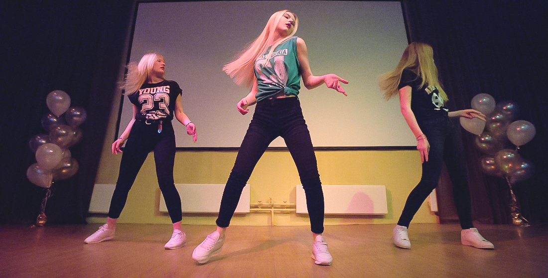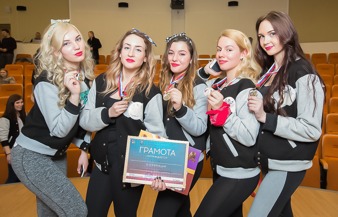 Номинацию «Командный танец» открыли энергичные девушки из команды «SSJ», а следом за ними выступили представительницы трио «Рикошет», которые продемонстрировали свой зажигательный танец.