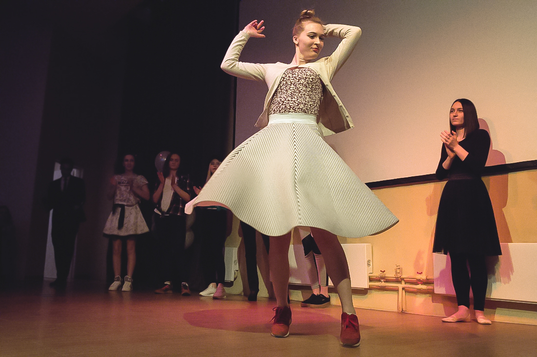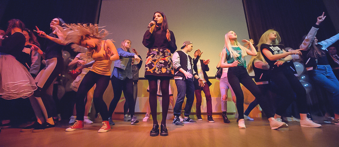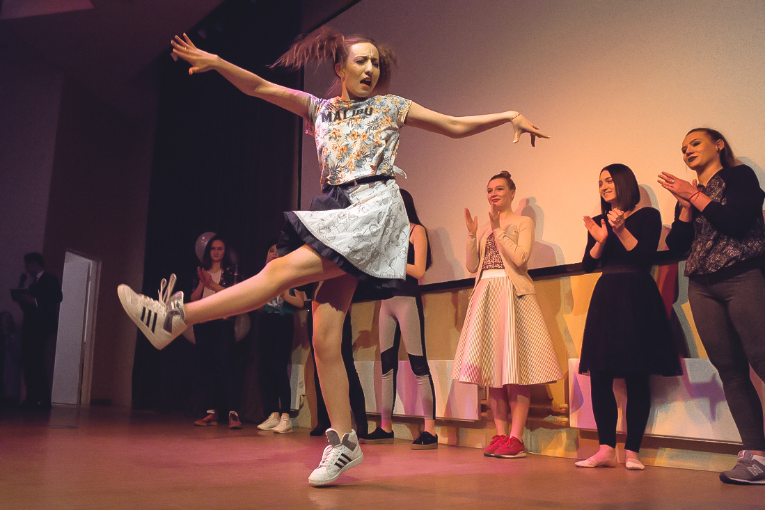 Неожиданный, но, несомненно, очень приятный сюрприз подготовила зрителям студентка Алина Данилова. Пока судьи совещались и подсчитывали баллы, Алина исполнила популярную композицию, под которую на сцену поднялись не только танцоры, но и все желающие зрители, которых оказалось немало.