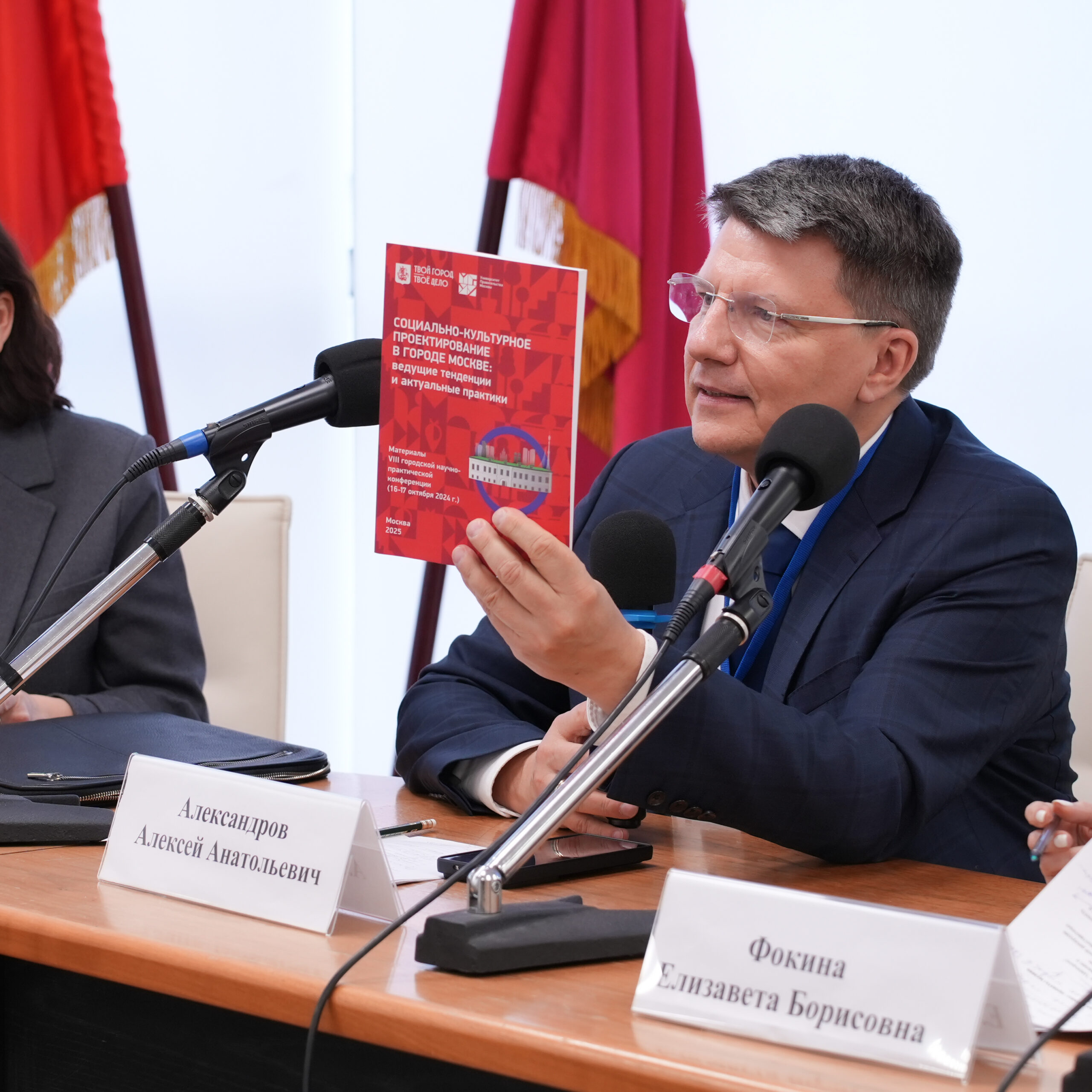 Алексей Александров, проректор по высшему образованию и молодежной политике и председатель оргкомитета конференции, открывая панельную дискуссию «Социально-культурная идентичность жителей города Москвы: проекты музеев и выставочных центров», представил сборник материалов 2024 года и отметил развитие тем конференции — от цифровизации к социально-культурной идентичности.