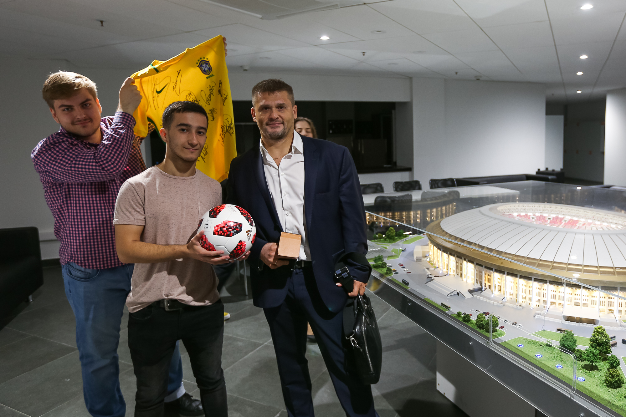 Участники школы посетили стадион «Лужники». Они узнали об истории строительства и масштабной реконструкции стадиона, побывали там, куда не пускают болельщиков: в раздевалках игроков и других внутренних помещениях.