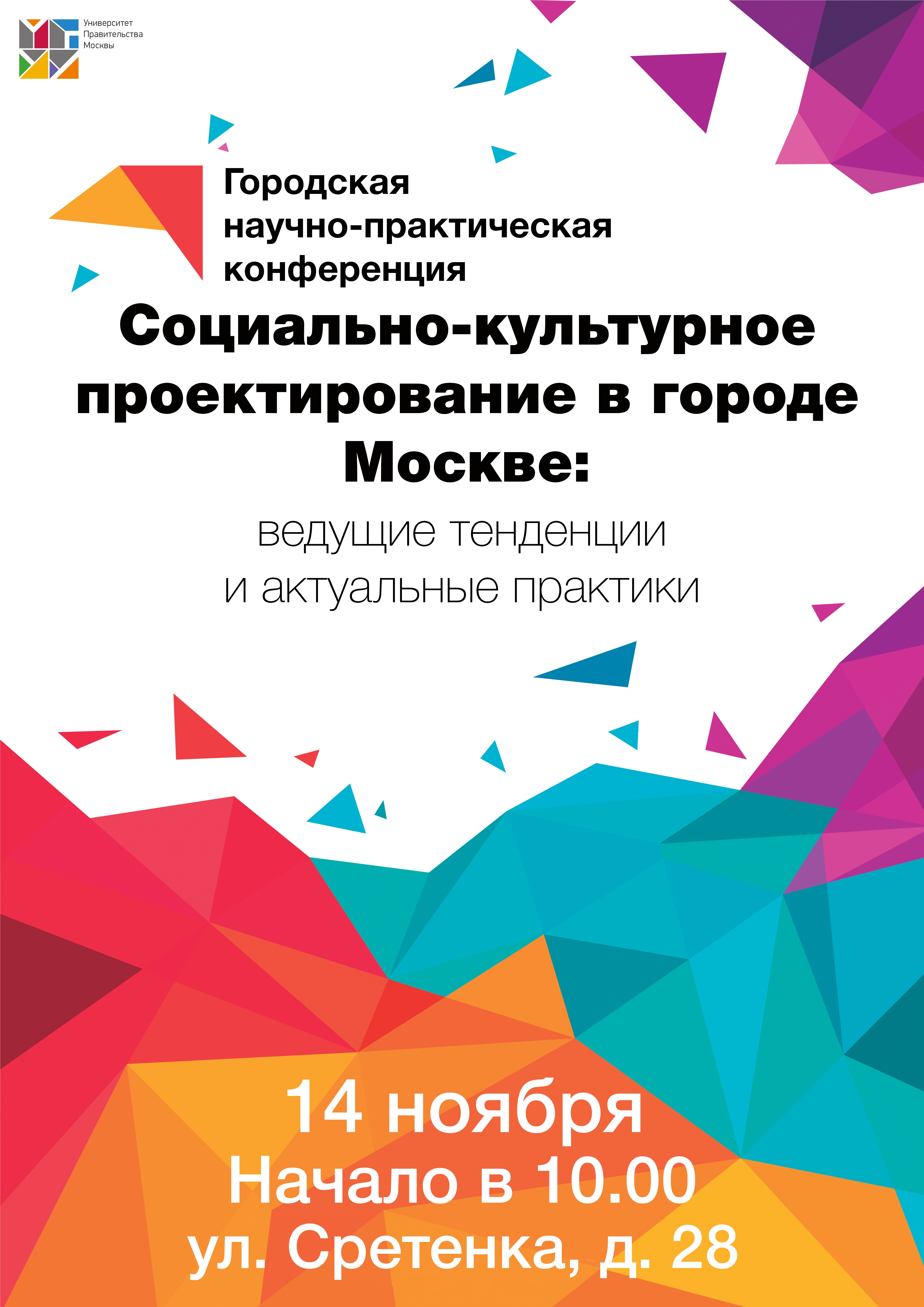 14 ноября 2017 года в Университете Правительства Москвы состоится городская научно-практическая конференция «Социально-культурное проектирование в городе Москве: ведущие тенденции и актуальные практики».