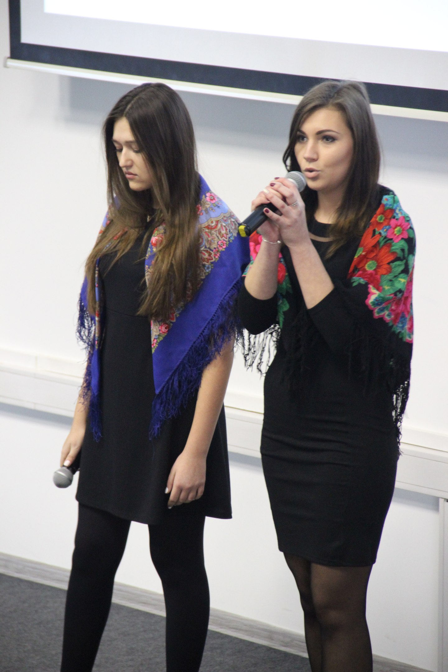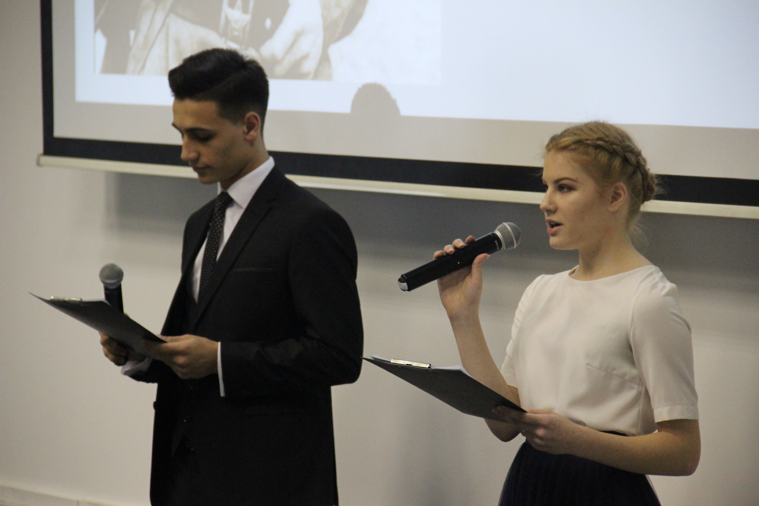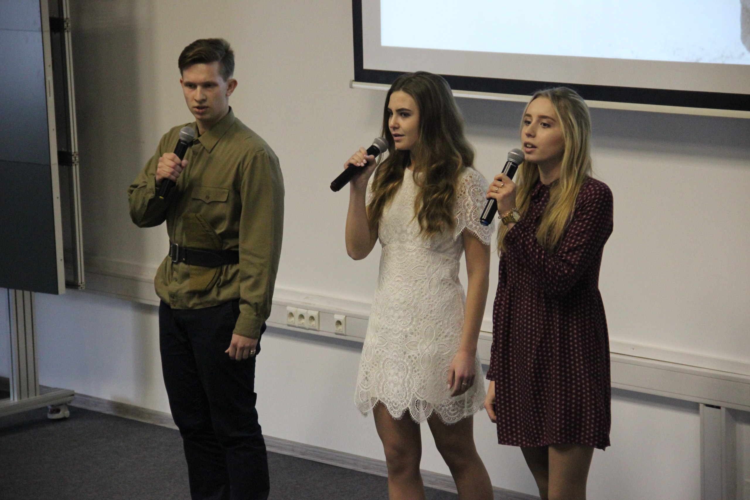 Студентки II курса Татьяна Носачева и Алина Данилова исполнили стихотворение Натали Самоний «Почему березы в крапинку» о том, как природа хранит память о событиях войны.