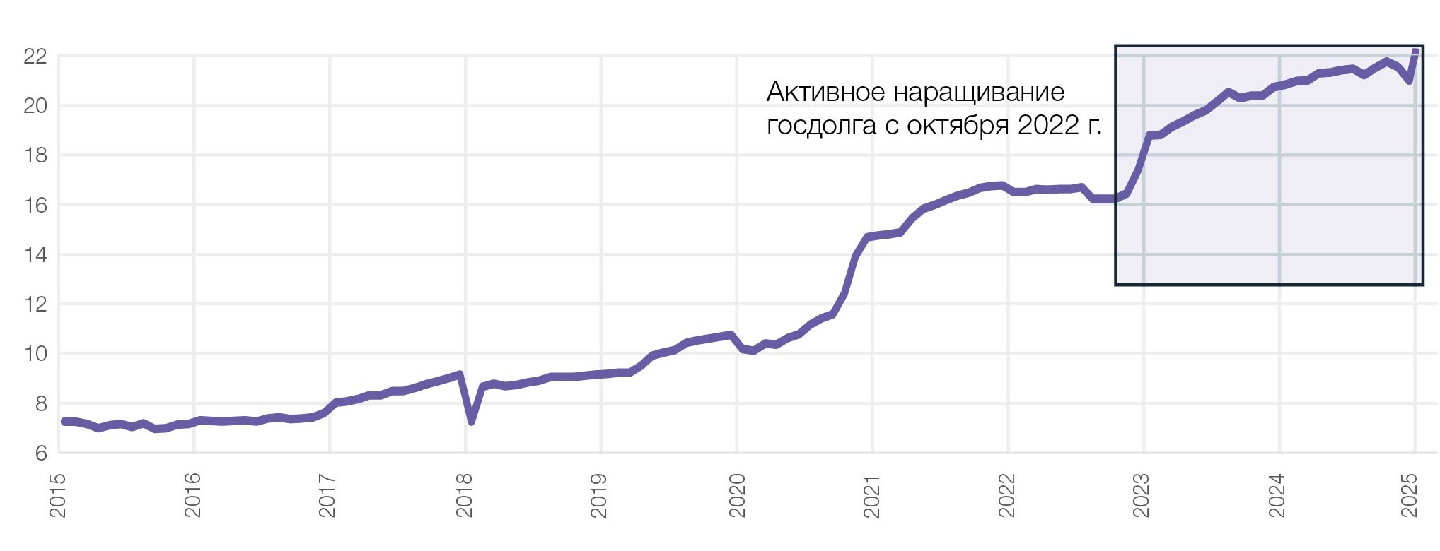 Рис. 3. Динамика внутреннего госдолга России, трлн руб. (источник: Минфин России)
