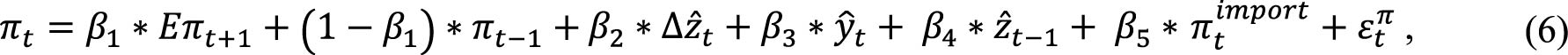 В работе [7] в качестве правила монетарной политики выделен «вариант правила Тейлора, в котором ставка процента, контролируемая органами монетарной власти, зависит от отклонения инфляции» от цели (и разрыва выпуска в зависимости от страны):