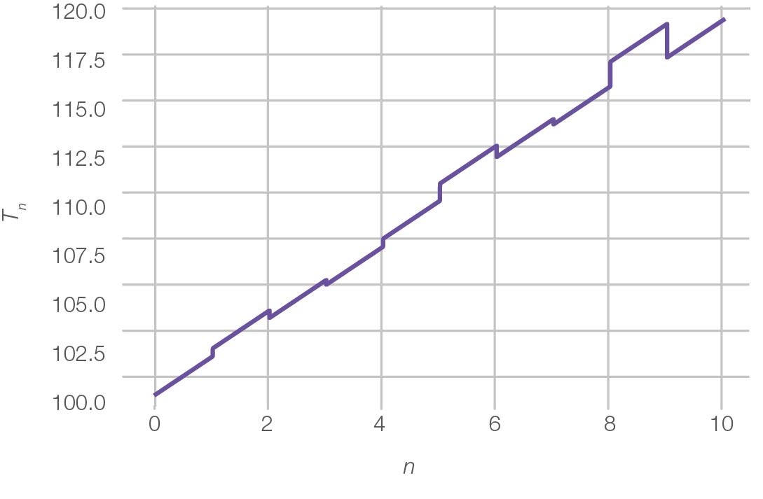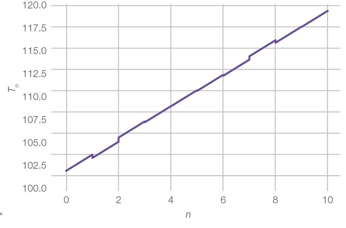 E[Tn+1|An] = Tn + (100 + 2 × n) + E[ξn+1|An] = Tn + (100 + 2 × n) + E[ξn] = Tn + (100 + 2 × n).