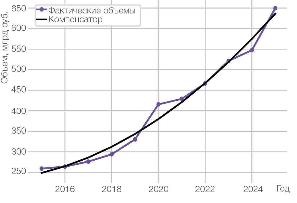 Рис. 6. Фактические объемы финансирования и компенсатор