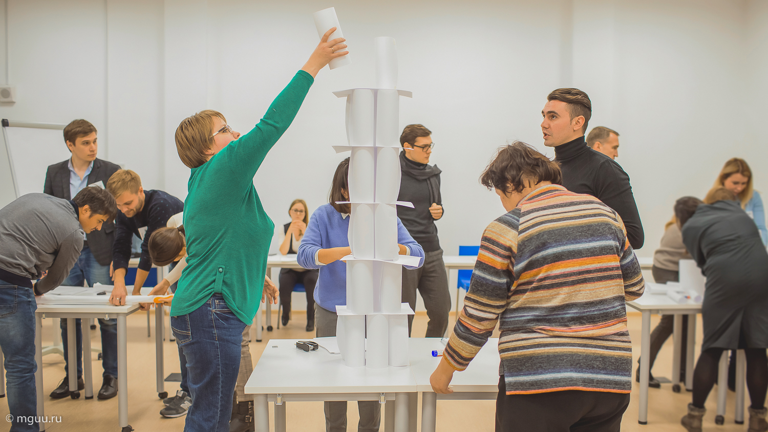 На тренинге слушатели разбирали виды мотивации, проанализировали свои страхи и движущие силы, затронули тему смысла и ценности своей работы. Они узнали о том, что помогает работать намного эффективней. А в конце отработали в команде задачи, ориентированные на результат: строили самую высокую башню Москва-сити.