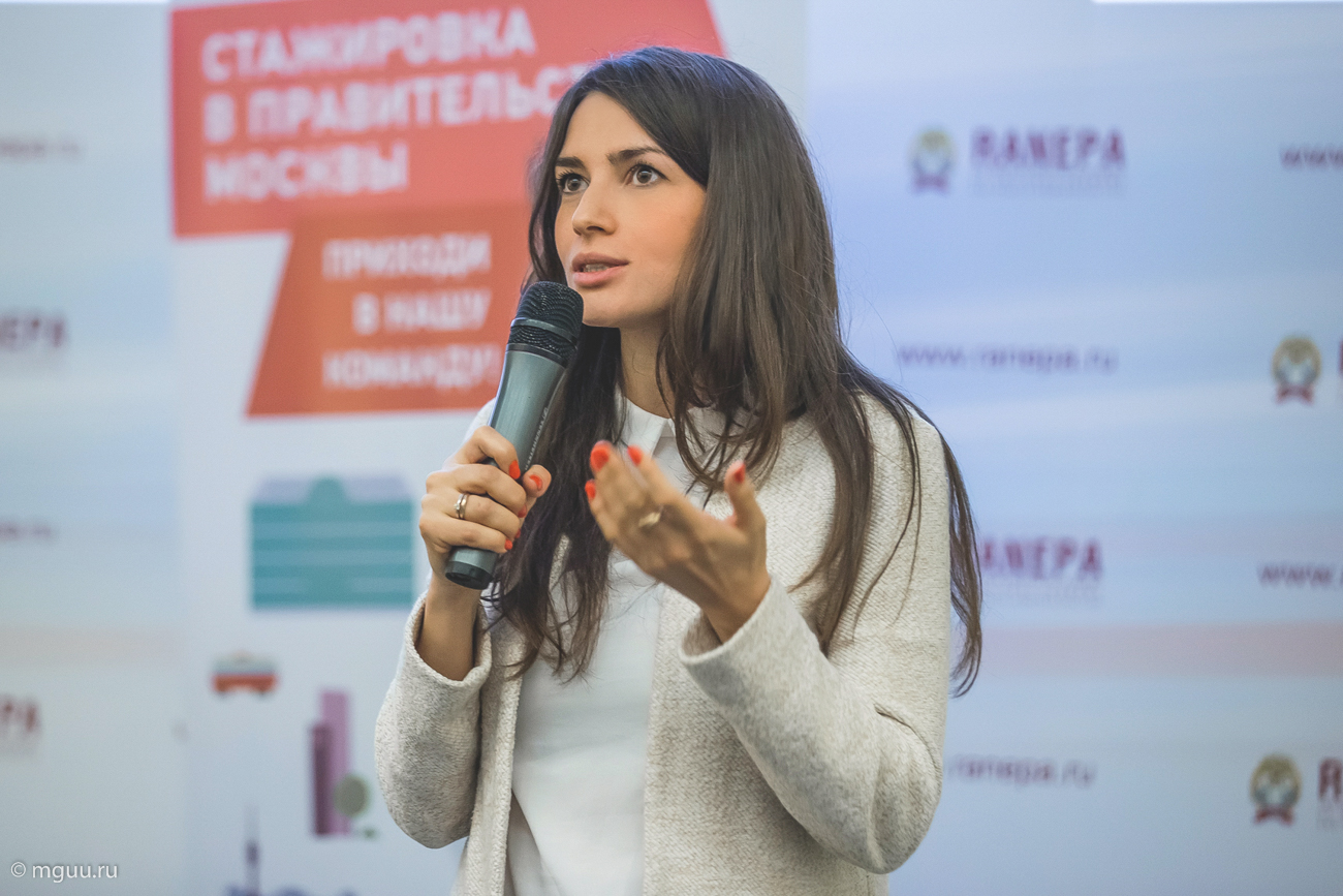 «Как известно, работодатели очень негативно относятся к тем, кто прыгает из одной компании в другую. Поэтому, когда вы начнете работать, у вас будет большое искушение просто устроиться куда-то и продержаться там год-два для своего резюме, — обратилась к аудитории Полина Логинова. — Стажировка же в Правительстве Москвы предоставляет выбор: за 9 месяцев работы вы сможете попробовать себя в разных департаментах: в пресс-службе, в министерстве экономики, торговли, транспорта, культуры. К концу стажировки вы точно определитесь, кем вы хотите стать».